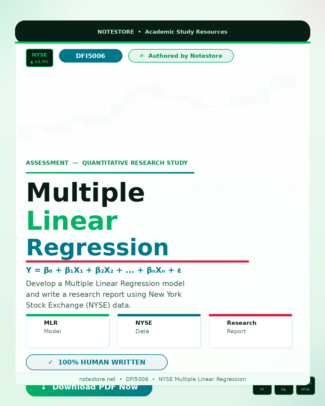 DFI5006 Assessment:You are required to carry out a research study in which you develop a Multiple Linear Regression (MLR) model and write a report about it using the data provided for New York Stock Exchange
